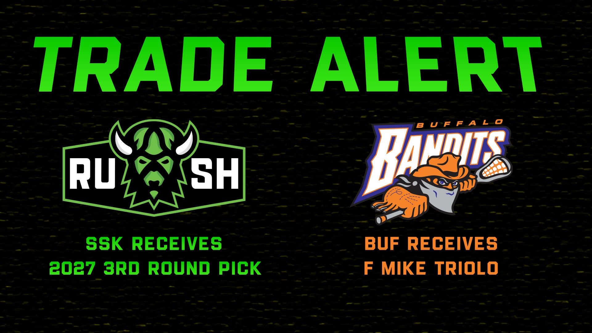 Saskatoon, SK – We have traded forward Mike Triolo to Buffalo for a 3rd round pick in the 2027 NLL Draft.